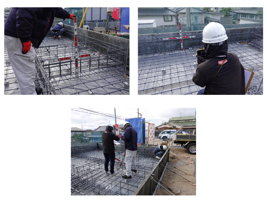 配筋が完成した後は、施工管理者や検査担当者によって配筋検査を実施しました。