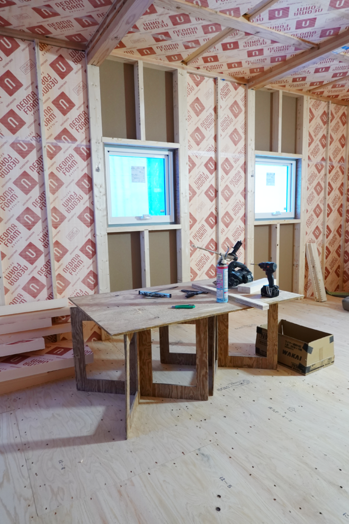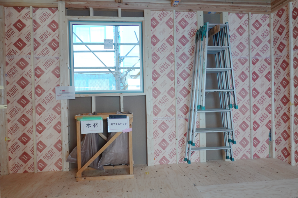 今回の建物では、ネオマフォームという断熱材を使用しています。