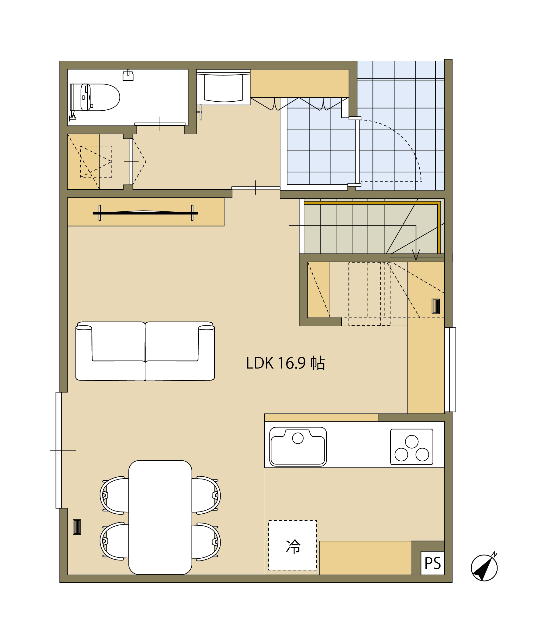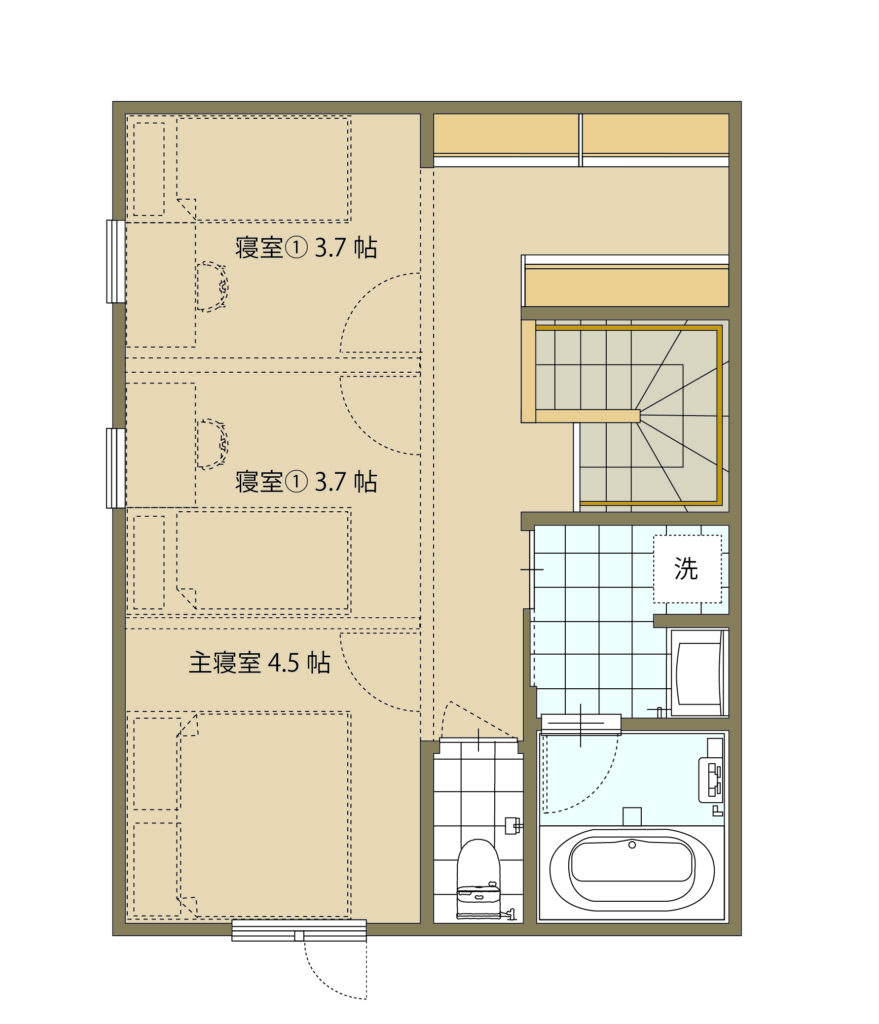 パブリックとプライベートを分けられる、2階浴室のあるシンプルな間取り