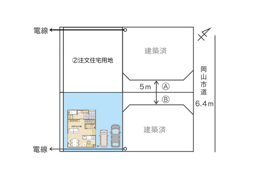 | 接道 | 岡山市道北東6.4m 団地内道路5m |